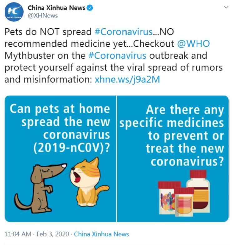 报道《远离谣言科学防疫:世卫组织推出疫情流言终结者》《可以收来自中国的包裹吗,WHO说没问题!》传递了来自世卫组织的权威信息,“无证据显示宠物会感染病毒”的判断获得了来自宠物主人的赞许。