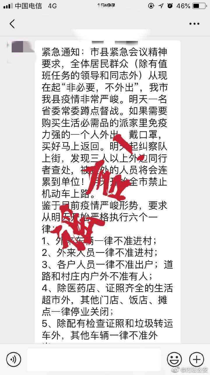 #微博辟谣##关于新型冠状病毒的谣言#网上流传的《紧急通知》,什么“市县紧急会议精神要求……市县各城区内于今日凌晨24后...