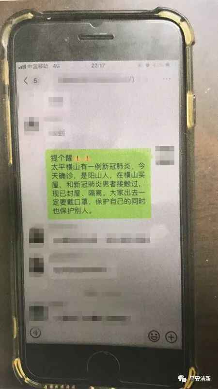 2月5日21时许,清远市公安局太平派出所接到线索称:一名叫谭某某的太平籍女子在微信群上发布太平镇有人感染新型冠状病毒的虚假信息。获悉上述线索后,民警立即前往清新区太平镇马塘村委会某村一住宅,将谭某某传唤回派出所调查。