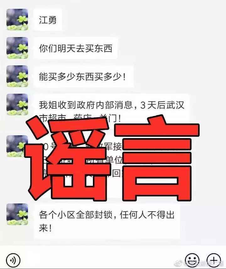 对于社交媒体上出现的此谣言,武汉市商务局发布紧急声明:网传的“三天后超市关门”消息,纯属谣言。武汉全市商超企业将坚持正常营业。
