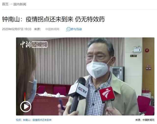 2月7号,钟南山院士在接受广州媒体采访时表示,最近几天来,新型冠状病毒性肺炎确诊人数相对比较平稳,没有明显的增多或减少,但是这样的数据并不能说明疫情拐点的到来,现实情况也很难支撑这个观点,需要继续观察,全国人民需要坚持做到早发现、早隔离,不能松懈!