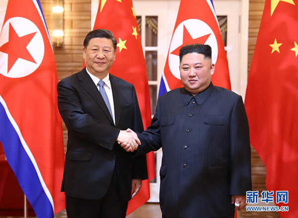 2019年6月20日,中共中央总书记、国家主席习近平同朝鲜劳动党委员长、国务委员会委员长金正恩在平壤举行会谈。