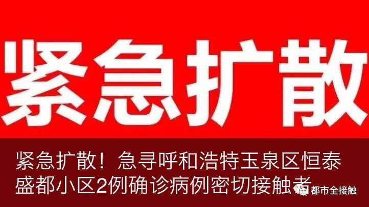 紧急扩散!急寻呼和浩特玉泉区恒泰盛都小区2例确诊病例密切接触者