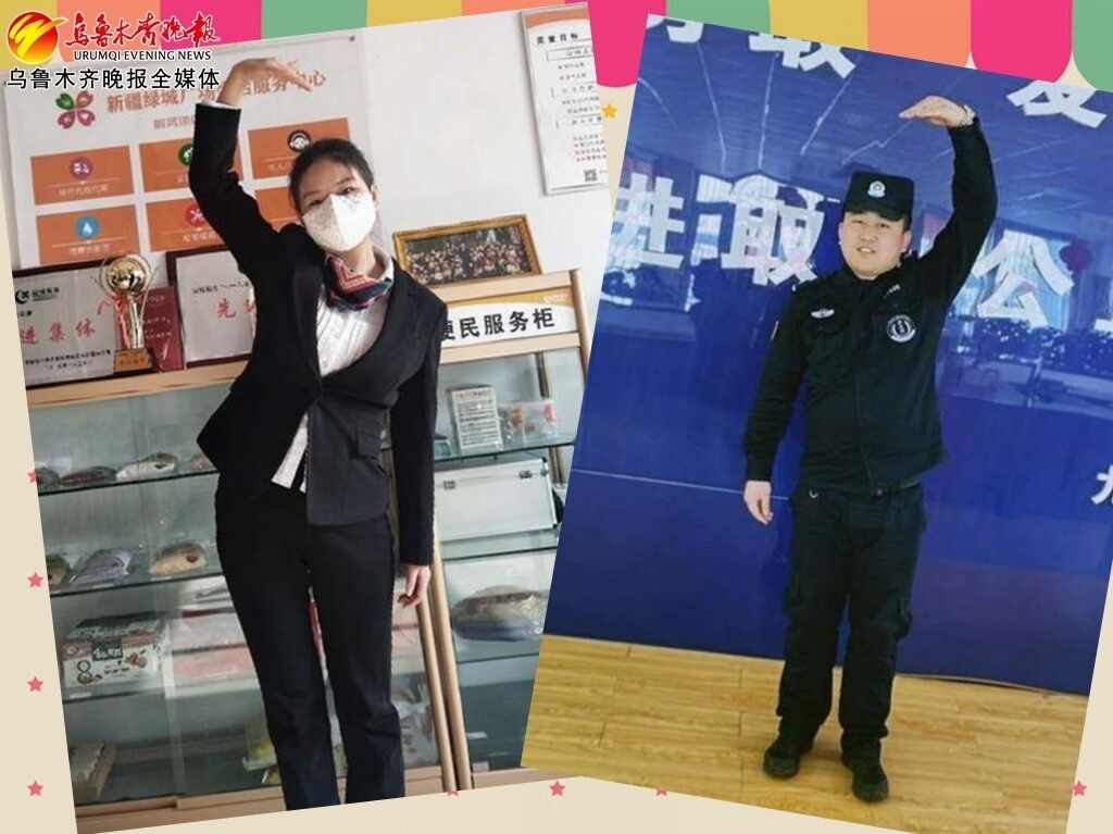妻子张红霞(左) 乌鲁木齐绿城广场住宅物业服务中心员工,丈夫鲁军征(右)阜康市人民警察。