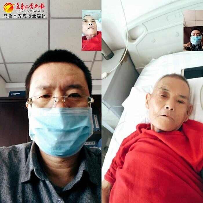 2月8日,市市场监管局办公室副主任邢景新与父亲的微信视频截图。(图由受访者提供)