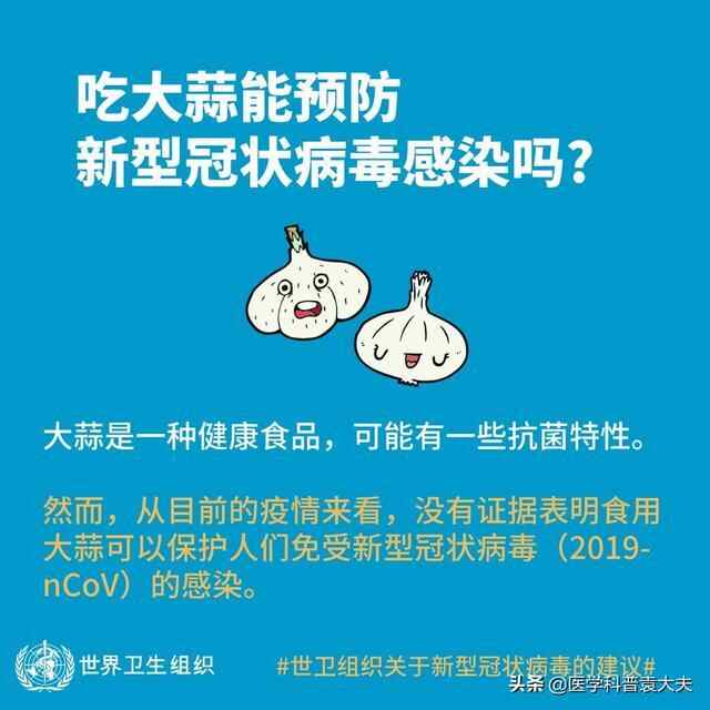 大蒜是一种健康食品,可能有一些抗菌特性。然而,从目前的疫情来看,没有证据表明食用大蒜可以保护人们免受新型冠状病毒(2019-nCoV)的感染。