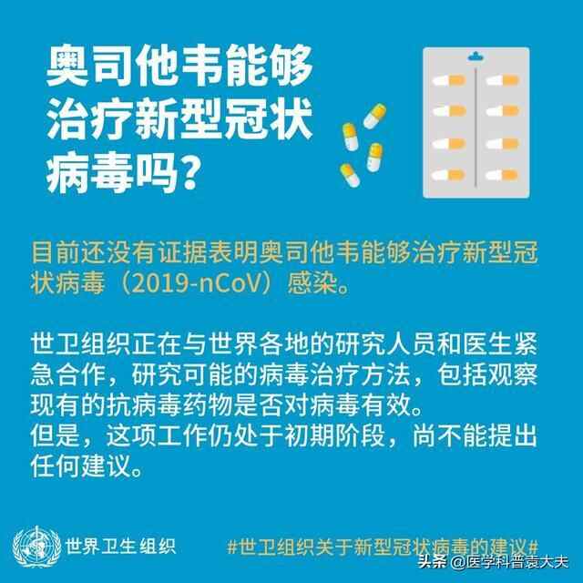 目前还没有证据表明奥司他韦能够治疗新型冠状病毒(2019-nCoV)感染。