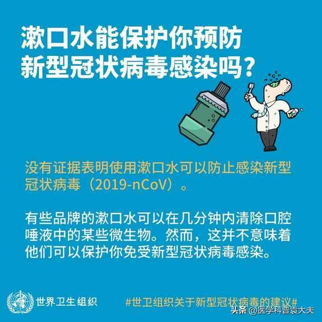 没有证据表明使用漱口水可以防止感染新型冠状病毒(2019-nCoV)。