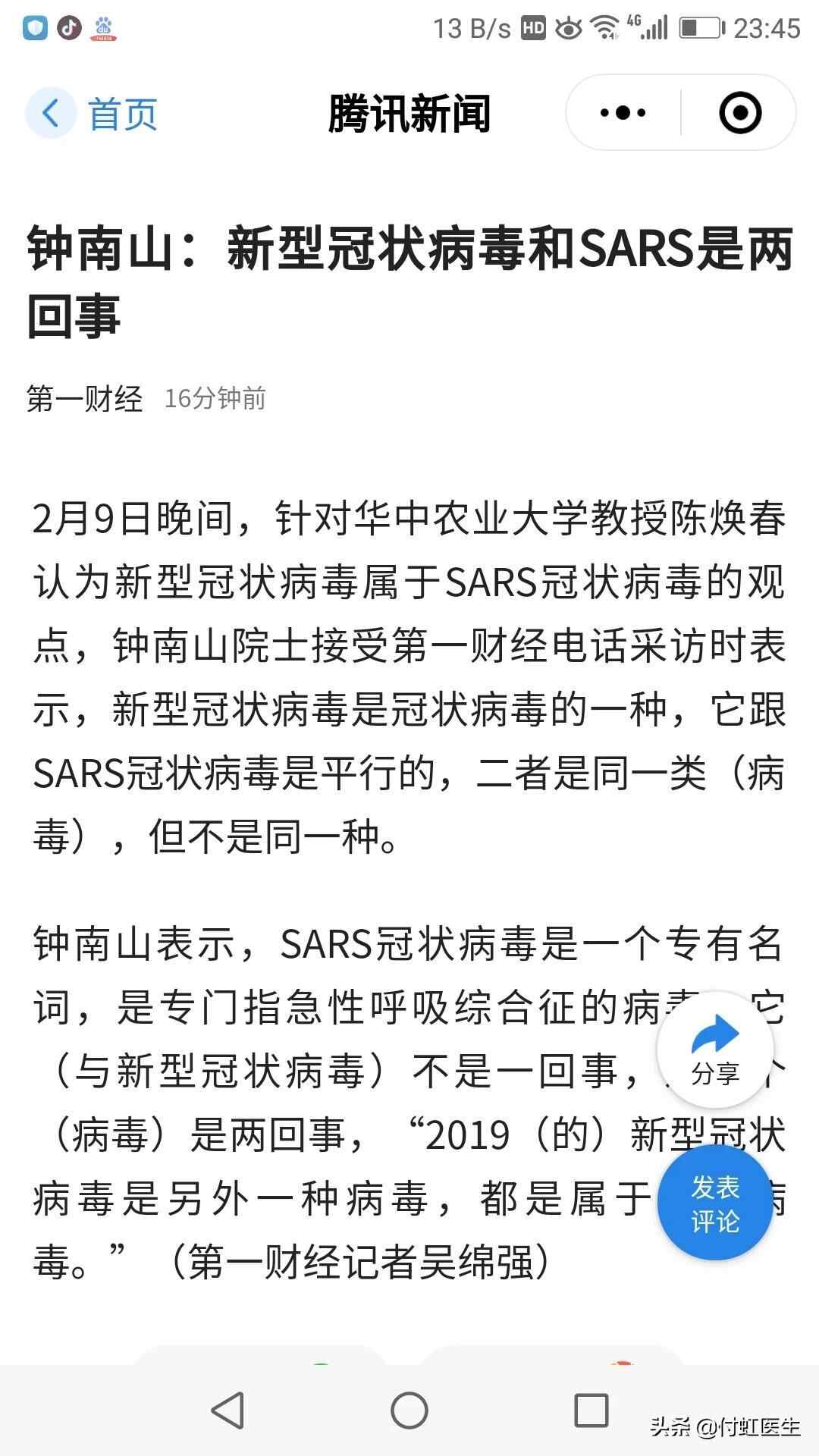 钟南山辟谣 新型冠状病毒和SARS是两回事。#关注新型肺炎#