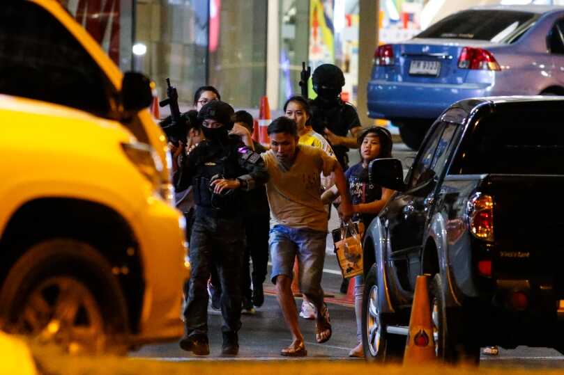 据泰国媒体报道,枪手名为乍甲潘·托马,32岁,是一名军士长。枪手疑因地产中介费与上司发生纠纷,8日在呵叻府射杀其上司和一名女子,后到一处军营弹药库抢走枪支、弹药及手雷,并在开车潜逃过程中扫射路人和警察。他逃入商场后继续开枪扫射路人,并射击商场内煤气罐,导致大规模火灾。他在劫持人质后与警方对峙,警方9日清晨在商场冷藏室内找到并击毙枪手。枪手在作案过程中还在社交媒体上更新个人动态,发布照片和视频。