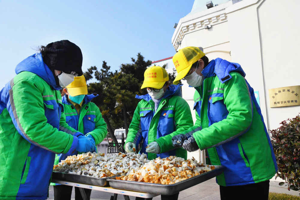 记者现场见到,工作人员将热心市民和企业捐助的馒头、面包等切掰成小块后送到海滩。一边模仿鸟儿清脆的呼唤,一边向空中抛洒,吸引海鸥飞来进食。青岛海滨风景区栈桥景区管理处主任王万波告诉记者,为免除市民关切和担心,从2月2日起,栈桥附近海域的海鸥已经由工作人员一日两次集中投喂。不仅让海鸥们不饿肚子,还避免了人员聚集,利于疫情的防控。