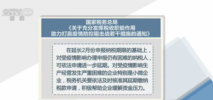 央视网消息:面对疫情,国家税务总局昨日(10日)印发《关于充分发挥税收职能作用 助力打赢疫情防控阻击战若干措施的通知》,推出多项具体措施,助力疫情防控和企业复产扩能,帮助受疫情影响的企业纾困解难。