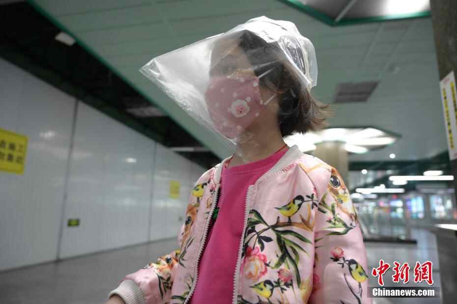 2月13日,一名女孩带着自制面罩经过广州地铁长寿路站。中新社记者 姬东 摄