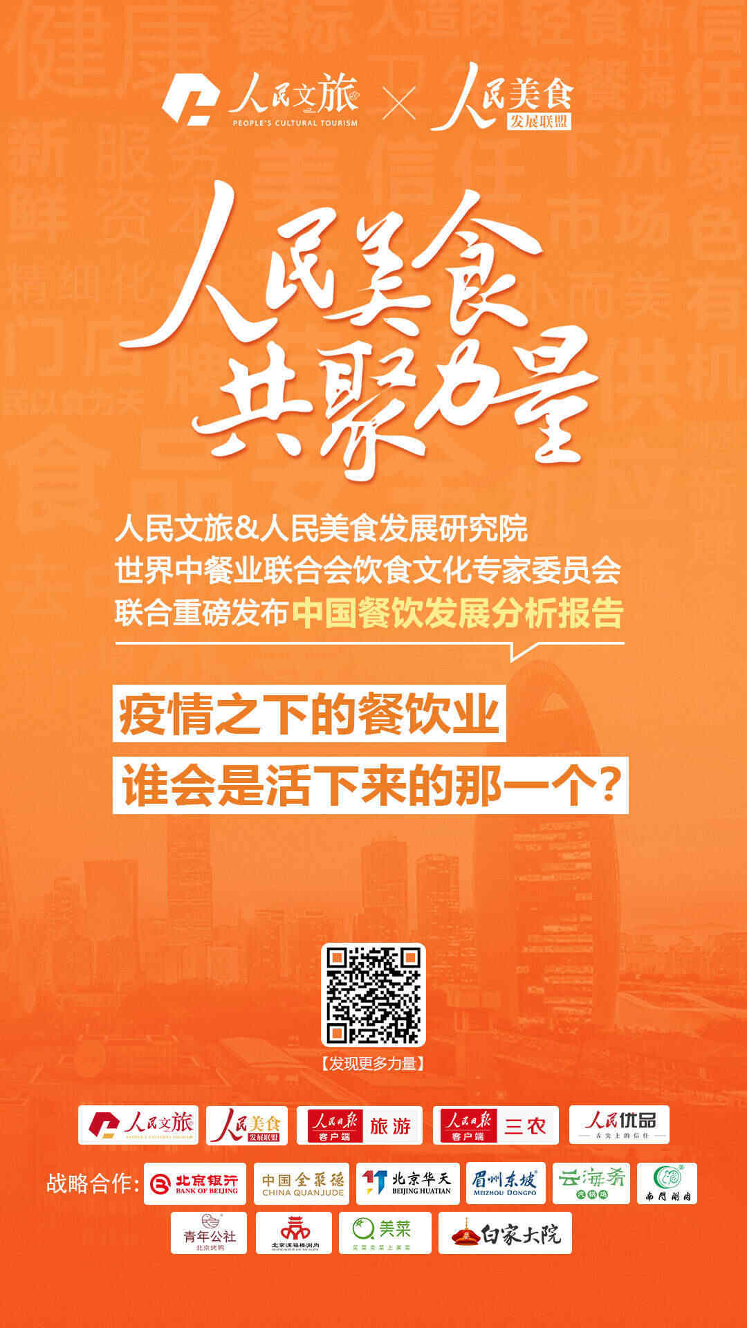 2020年伊始,中国餐饮行业经历了新型冠状病毒肺炎疫情带来的严峻考验。疫情之下的餐饮行业受到什么样的冲击?经此一“疫”,什么样的餐饮企业会更好地活下来?哪种业态的餐饮模式会获得资本的青睐?餐饮行业会迎来什么样的新变革?人民日报社人民文旅、人民美食发展研究院与世界中餐业联合会饮食文化专家委员会联合重磅发布中国餐饮发展系列分析报告,全面呈现一个行业波澜壮阔的历练、发展与成长过程。