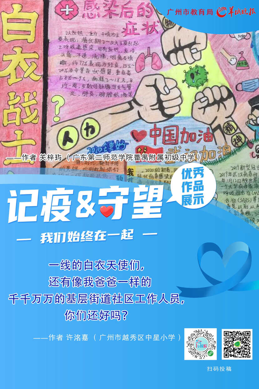 全民战“疫”时期,为挖掘新时代我们身边“最可爱的人”,弘扬各行各业先进战疫先锋的感人故事。2月7日,广州市教育局、羊城晚报社联合启动2020花地新苗作文大赛特别策划——“记疫和守望,我们始终在一起”征集活动。