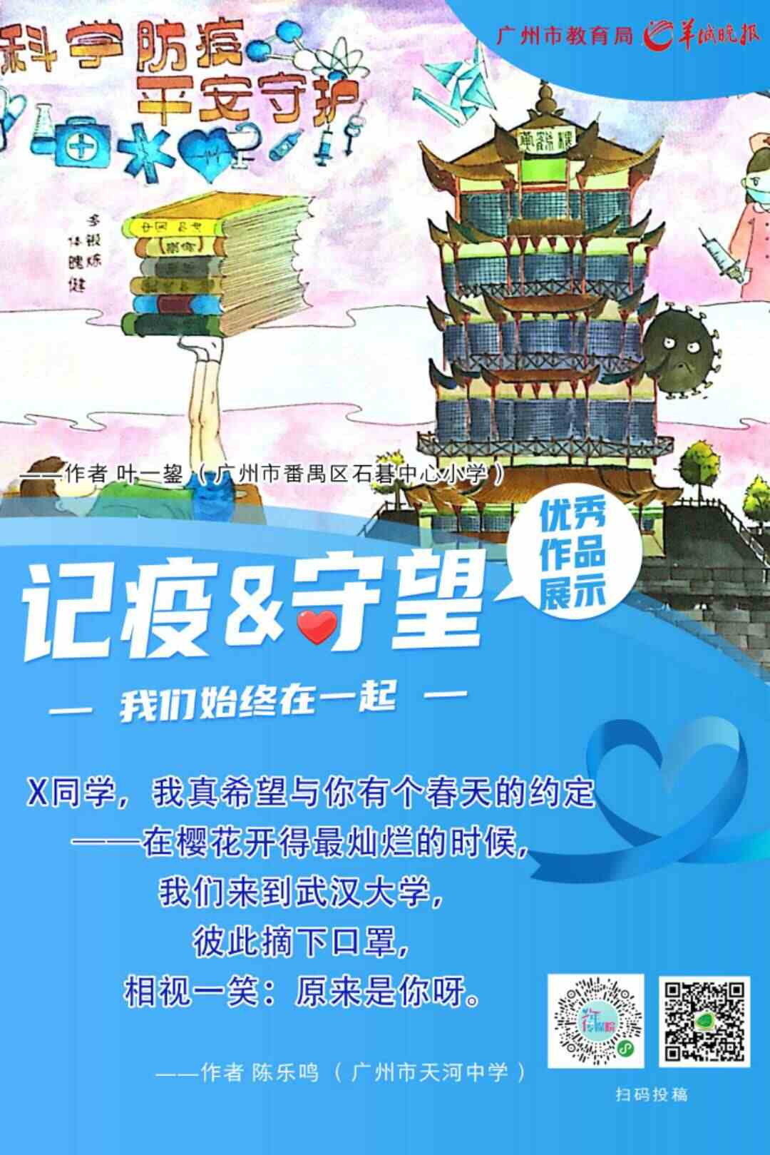 据介绍,目前此次征集活动已经收到了3000多份作品,主办方将仔细品读每一份作品,为大家挑选出优秀的作品进行展示,分批对文章、绘画和短视频三种类型的优秀作品在广州市教育局官方微信“广州教育”,羊城派 APP科教频道和“羊城晚报学大大”、“羊城晚报校园达人”等平台进行展示。征集活动持续中,可继续投稿。