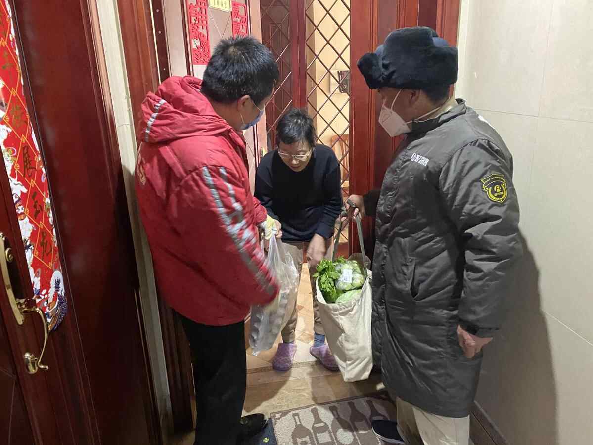 社区工作人员到店里将热菜热饭取回,送到了老人的家中。值守在小区门口的工作人员每日都要上楼去看看她,为她带上一份晚饭。偶尔给她送上一些馒头、豆包,或者帮她采买一些蔬菜、日用品为她送上门。