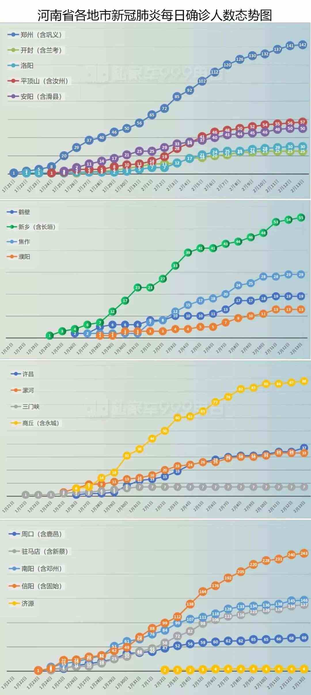 2020年2月13日0-24时,河南省新增新型冠状病毒肺炎确诊病例15例,新增治愈病例55例,新增死亡病例1例。新增确诊病例中,信阳市3例、驻马店市3例、许昌市3例、南阳市1例、郑州市1例、周口市1例、平顶山市1例、新乡市1例、商丘市1例。