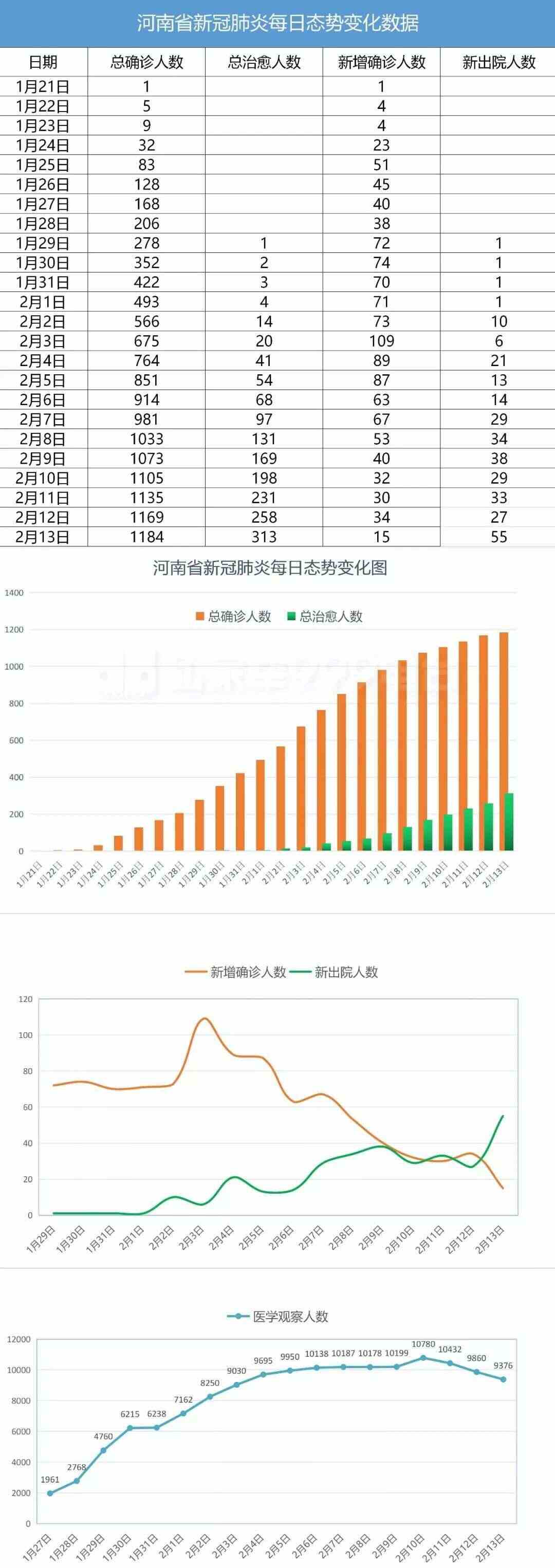 截至2月13日24时,全省累计报告新型冠状病毒肺炎确诊病例1184例,现有重症病例49例,现有危重病例34例,累计死亡病例11例,累计治愈病例313例。