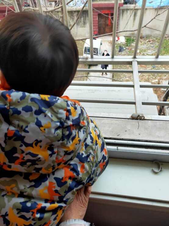 “爸爸,我好想你呀!”“宝贝别哭,快跟爸爸说说想说的话,爸爸马上就要去工作了,快挥挥手给爸爸看。”邮储银行安徽省淮南市分行授信管理部蔡一鸣正抱着哭泣的儿子对站在楼下的爱人程舜喊话。程舜是淮南市高新区管委会土地储备中心工作人员,疫情期间,作为社区志愿者的他放弃春节假期,全天坚守在抗“疫”一线,每天都要整理小区人口摸排台账,对出入人员进行体温检测。由于小区某单元楼曾出现新冠肺炎确诊患者,目前全单元处于隔离观察阶段,程舜坚持每日送菜上门。考虑到自己的孩子年龄小,程舜选择“自我隔离”,在外居住。实在想念孩子和妻子时,就在楼下远远地互望,大喊着与家人对话。