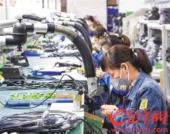 中山市三乡镇一家制造企业生产线上,工人正加紧生产 记者林翎摄
