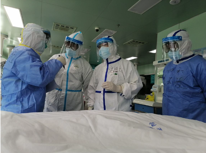 在医院高强度高风险的工作中,武汉协和人的冲锋在前、无私奉献精神,一直鼓舞着我们。要知道,他们重症室的很多医护人员,如吕政医生和曲护长等,已经顽强奋战一个多月了。我和吕医生交流比较多,他坚定的眼神中饱含着感恩的泪水,为了更好地工作,同时也为了不影响到家人,他自己在医院附近租了房子,根本没时间照顾两个很小的孩子。每天,最累最危险的活,他都主动扛起。他口上总是挂着一句话“广东医疗队给我们莫大的支持,我们本院的医护人员就理所当然冲在第一线”。这种舍小家顾大家的精神让我们非常感动。