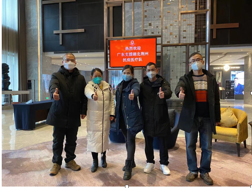 短暂的休整后,接到通知广东省第三批援鄂医疗队拆分为11个医疗小分队,深入湖北荆州市市区及7个市县的医院进行对口支援。广州小分队有广州市第一人民医院呼吸与危重症刘俊主任、番禺中心医院呼吸内科徐轶俊主任、广州中西医结合医院杨华邦护师、花都区人民医院张敏护师和来自广州市红十字会医院的我组成,由刘俊主任担任我们广州小分队的队长。