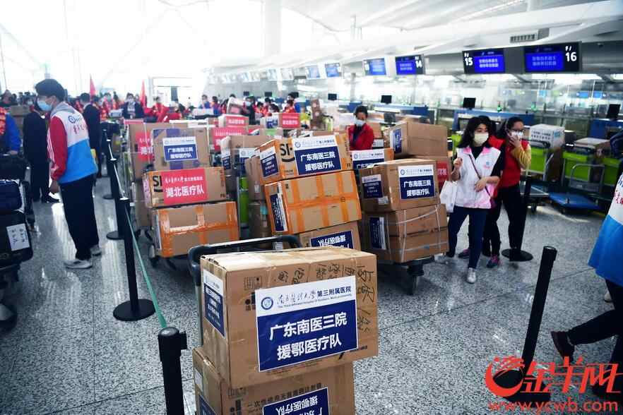 记者在现场也看到,每家医院的医疗队都带了大包小裹。一位来自广州市第一人民医院的医疗队员告诉记者,考虑到前方可能物资有限,“我们要带尽可能多的物资上前线,尽全力救治患者,对得起医护人员肩头的职责。”