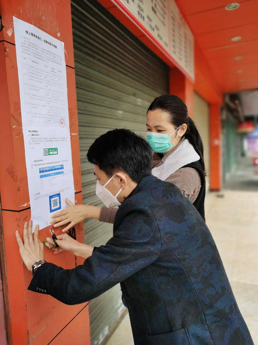 在黄埔区永和、南岗、云埔等街道,人力资源中介机构大门依然紧闭,但在显眼处都张贴了网络招聘会公告和海报,不时有工作人员在巡查,劝离聚集人员,指导他们网上招聘。此外,黄埔区人社局近期也加强了与区公安分局、市场监管局、街道等单位的协调配合,加大“黑中介”等违法违规行为打击力度。