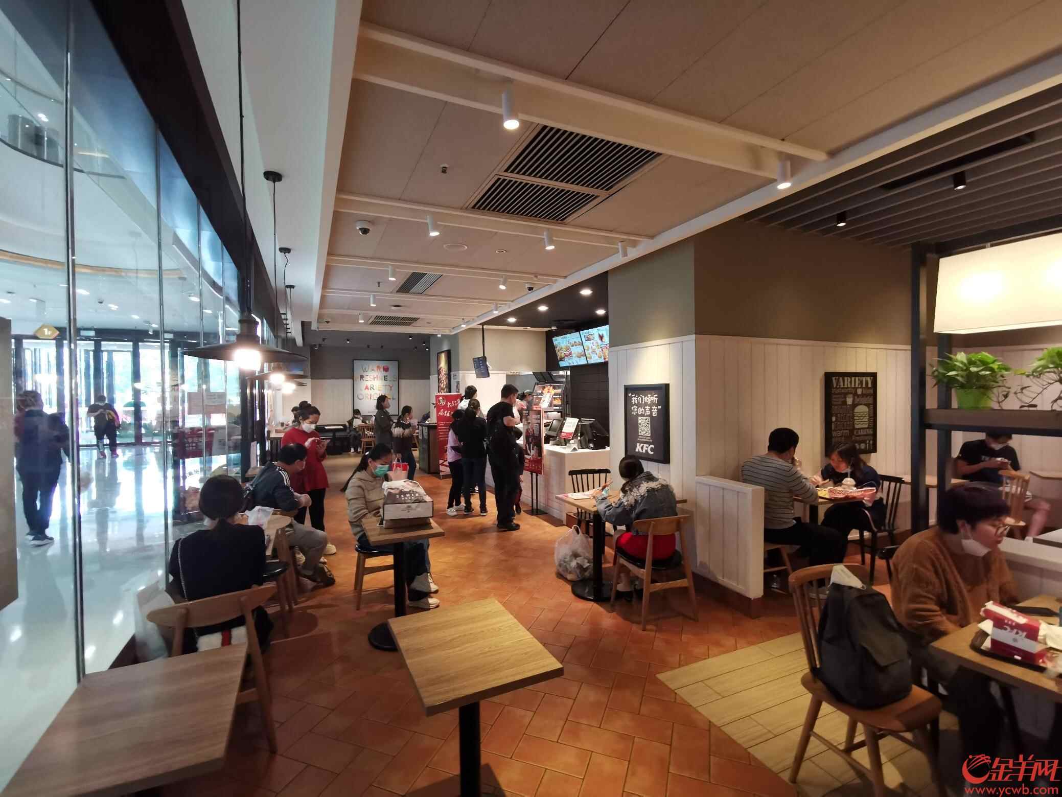 13:30,记者在万达广场一层的肯德基看到,由于部分区域的桌椅被收起,店内基本上已经满座。此外,南沙万达广场一、二层的店铺基本上都已开业,金街商业区开业的店铺则不多。“探鱼”烤鱼店虽开业但不支持堂食,只能外带;万达宝贝王没有开业。目前中央商业区与金街商业区之间的通道皆已关闭,市民只能通过星巴克旁的大门进去中央商业区。