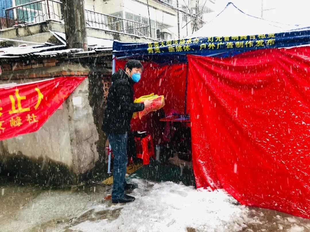 查红兵冒雪给在小区值守的干警送雨衣