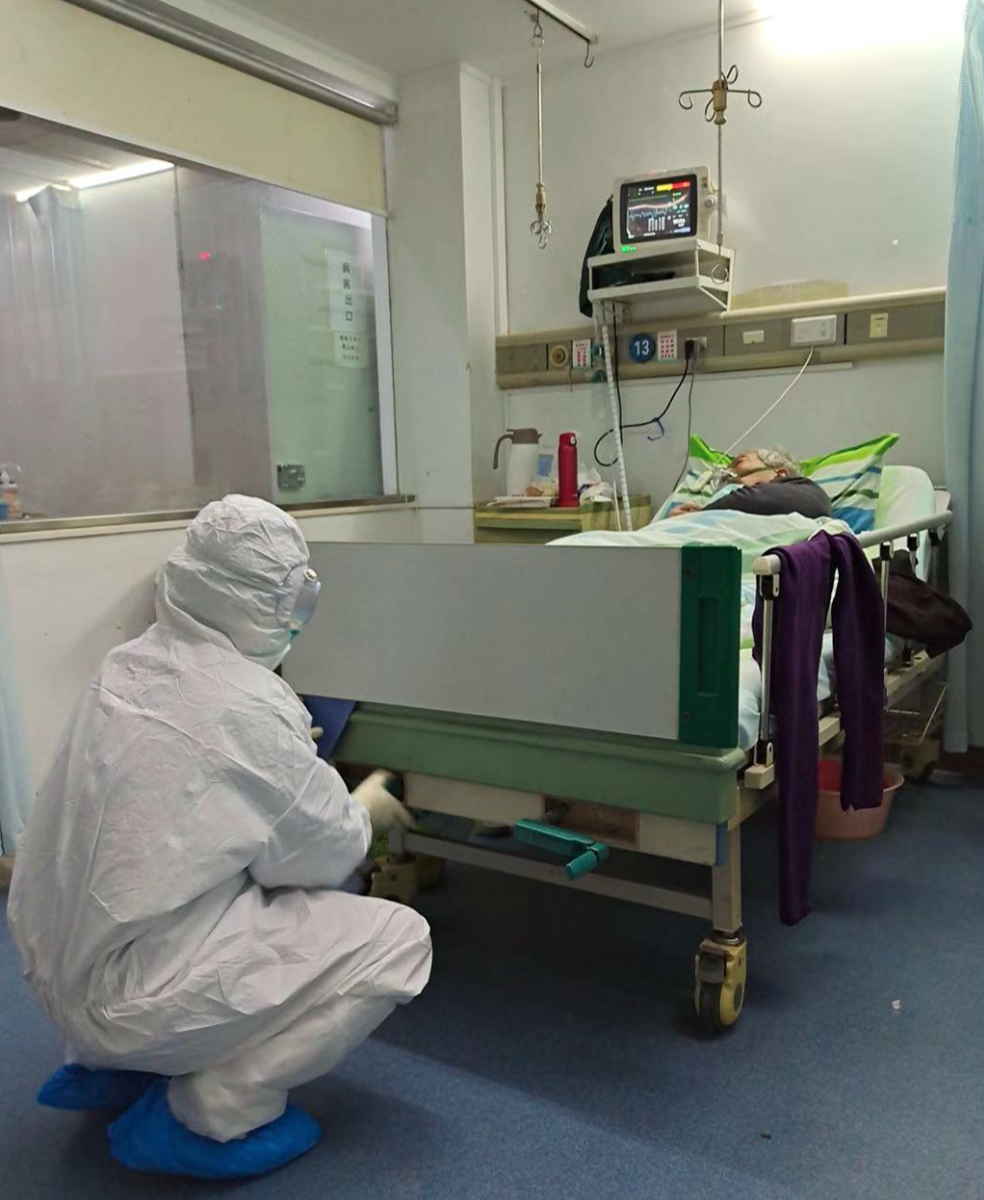 回顾这一个月时,疫情无情。有一对夫妻,老两口,先后入院。老伯危重。老婆婆每日都心事重重,不吃也不喝,甚至不配合呼吸机的治疗。看到婆婆不配合治疗,非常着急,于是他很严肃地对婆婆说,你看,老伯现在状况一点点在好转,你要是不配合早点好起来,到时候你怎么照顾他?经过队员“轮翻上阵”,各种劝说,婆婆终于肯吃东西,肯做治疗了。