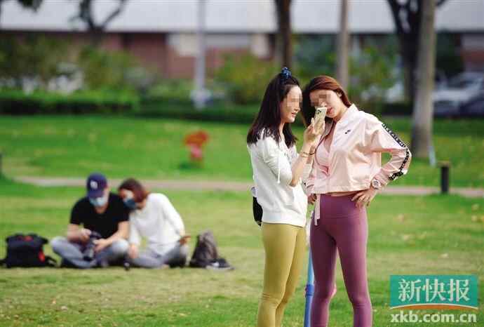 26日下午,在海珠区的海珠湿地公园里新快报记者看到,这里的游客多是全家出游。把口罩脱到下巴处的游客随时可见,而不戴口罩的市民还会从其他游客身边走过。