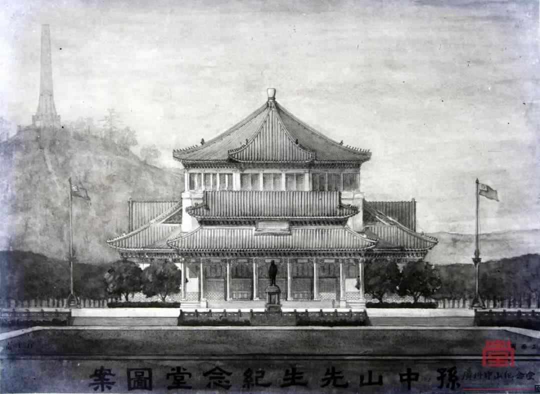▲1926年9月1日,专家评定吕彦直的设计图获得纪念堂及纪念碑图案设计竞赛第一名。评选委员会认为其设计图,山上筑碑、山下建堂,互为连贯,交相辉映,“纯中国建筑式,能保存中国的美术最为特色”。