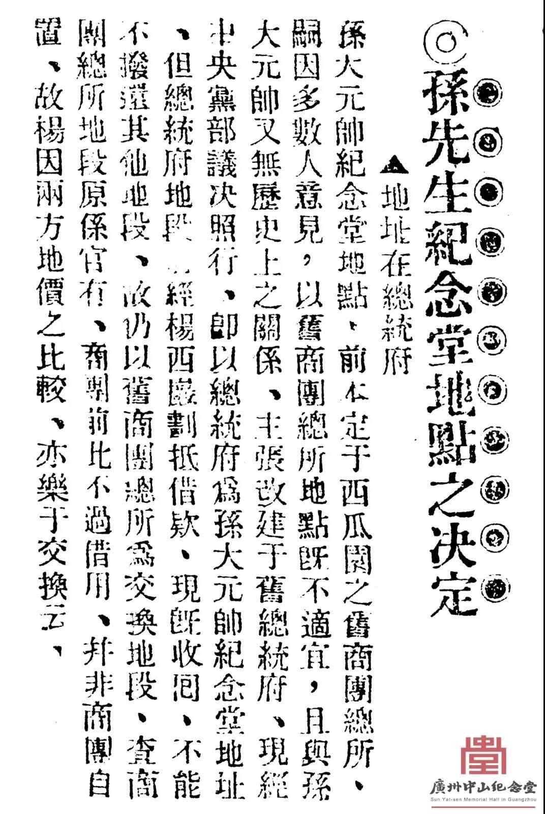 ▲经过多方讨论,国民党中央党部最后决定以旧总统府为纪念堂地址。图为《广州民国日报》1925年4月25日的报道。