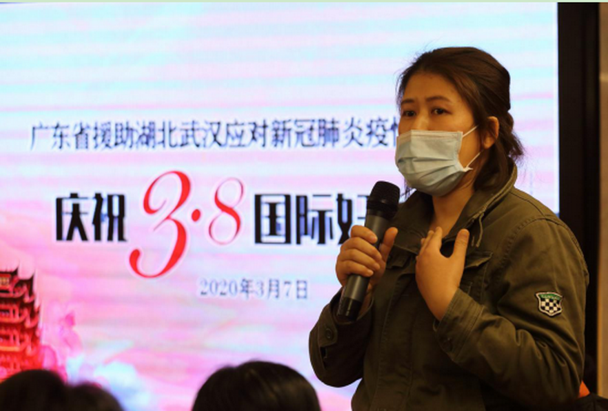3月7日晚上,为充分表达对战斗在抗击疫情最前线,彰显医者仁心的“巾帼”的敬意和谢意,交流抗击疫情的心得体会,广东省援助湖北武汉新冠肺炎防治工作医疗队指挥部召开庆祝“三八”国际妇女节座谈会。