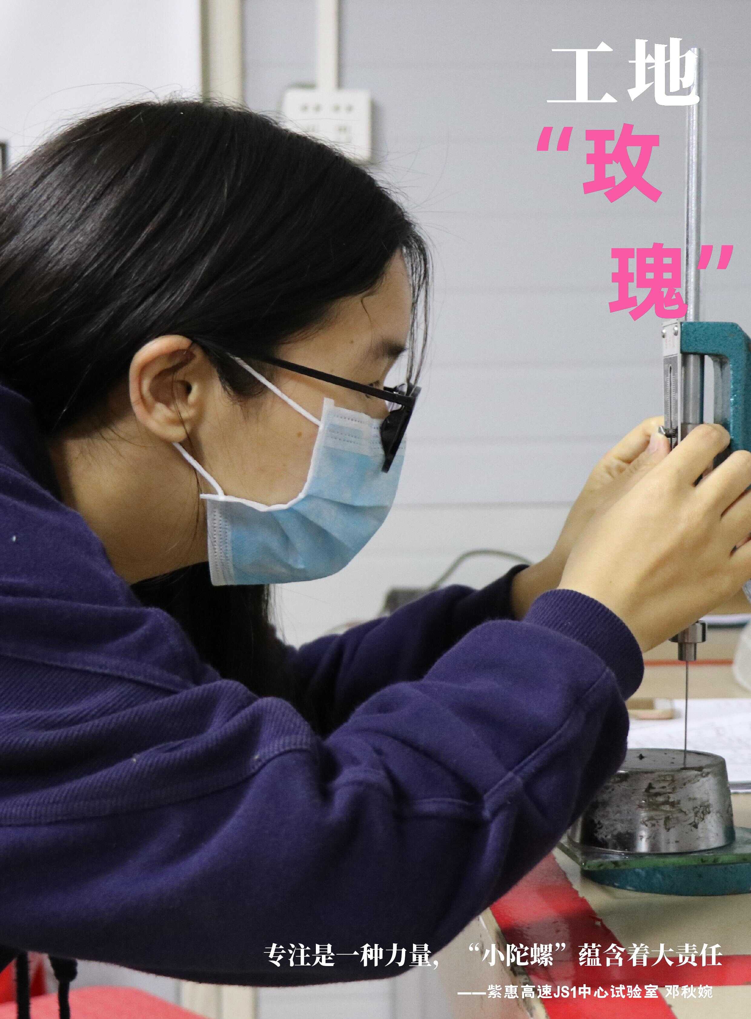 邓秋婉是紫惠高速JS1中心试验室的一名检测员,一个天天跟钢筋水泥打交道的90后女工程师。