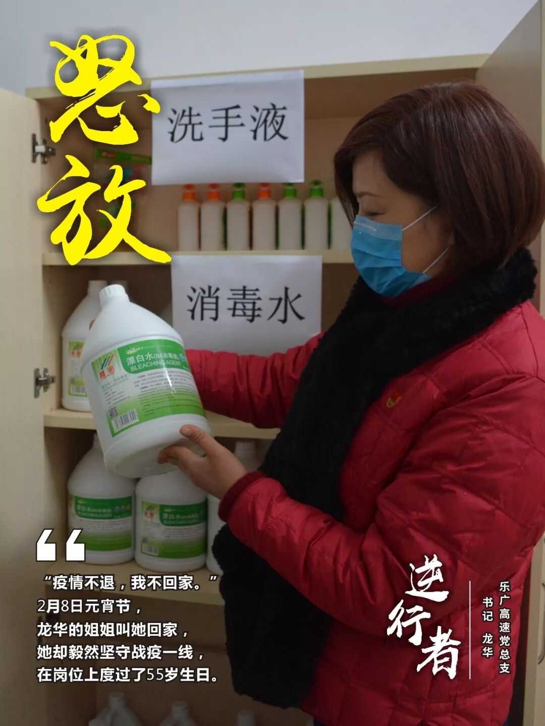 为做好医学医护、便民服务、秩序维护、心理疏导和健康筛查等工作,有着13年医护经验的龙华带头报名,很快就组建了12支疫情防控志愿者服务队。她带头深入乐广高速沿线服务区、收费站点24个体温检测点督导疫情防控工作。