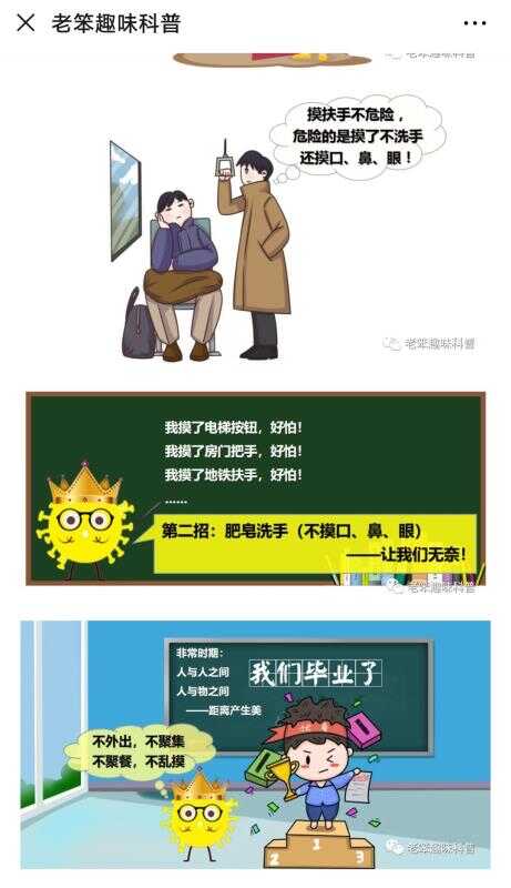 《戴帽子的怕在家睡觉的》《消毒不是万能的,不科学的消毒是万万不能的》《复工潮新冠病毒召开表彰大会,入围名单被公布》……3月9日,记者获悉,广州市海珠区疾控中心的一名工作人员张政白天奋战抗疫一线,晚上伏案创作科普,在趣味中传播新冠肺炎防控知识。