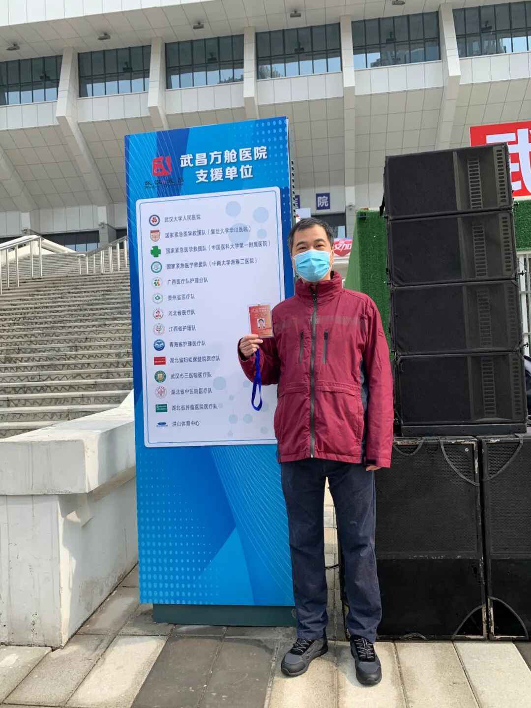 我是复旦大学附属华山医院外科的陈进宏。来武汉35天,今天迎来历史一刻:武昌方舱医院休舱啦!昨天晚上,我们医疗队全体队员一起值在方舱的最后一个夜班,与舱内最后一批49位患者道别。拍照时,我们喊“向武汉人民学习,向武汉人民致敬”,没想到患友们自发地喊出“向华山医院致敬”。