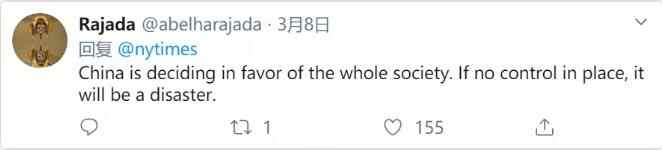 △网友 Rajada:中国作出的决定是为了整个社会。如果得不到及时控制,会发展成灾难。