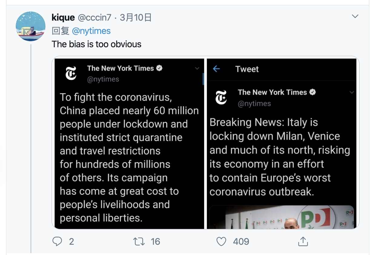 消息一出,《纽约时报》的留言板被“双标” (double standards)“偏见”(bias)等字眼淹没了……
