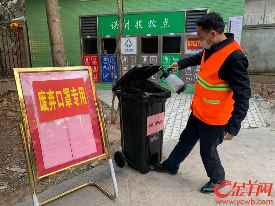 广州一社区设置废弃口罩专用垃圾桶,供居民分类投放垃圾 梁怿韬 摄