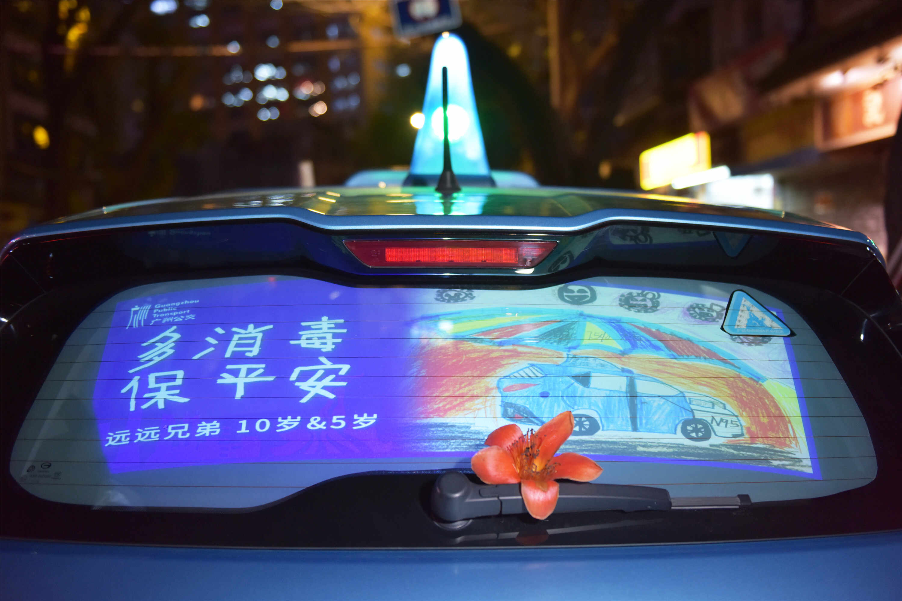 车主郭先生看到暖心的童画后说:“3月以来,路上迎来了久违的繁忙。等待回家的时候,看到前方出租车后玻璃上竟然播放着小朋友的画作,真让我眼前一亮!”天真可爱的童画,借助出租车户外车载新媒体平台,点亮广州的每个角落,与灯火阑珊的夜景交相辉映,温暖羊城你我。
