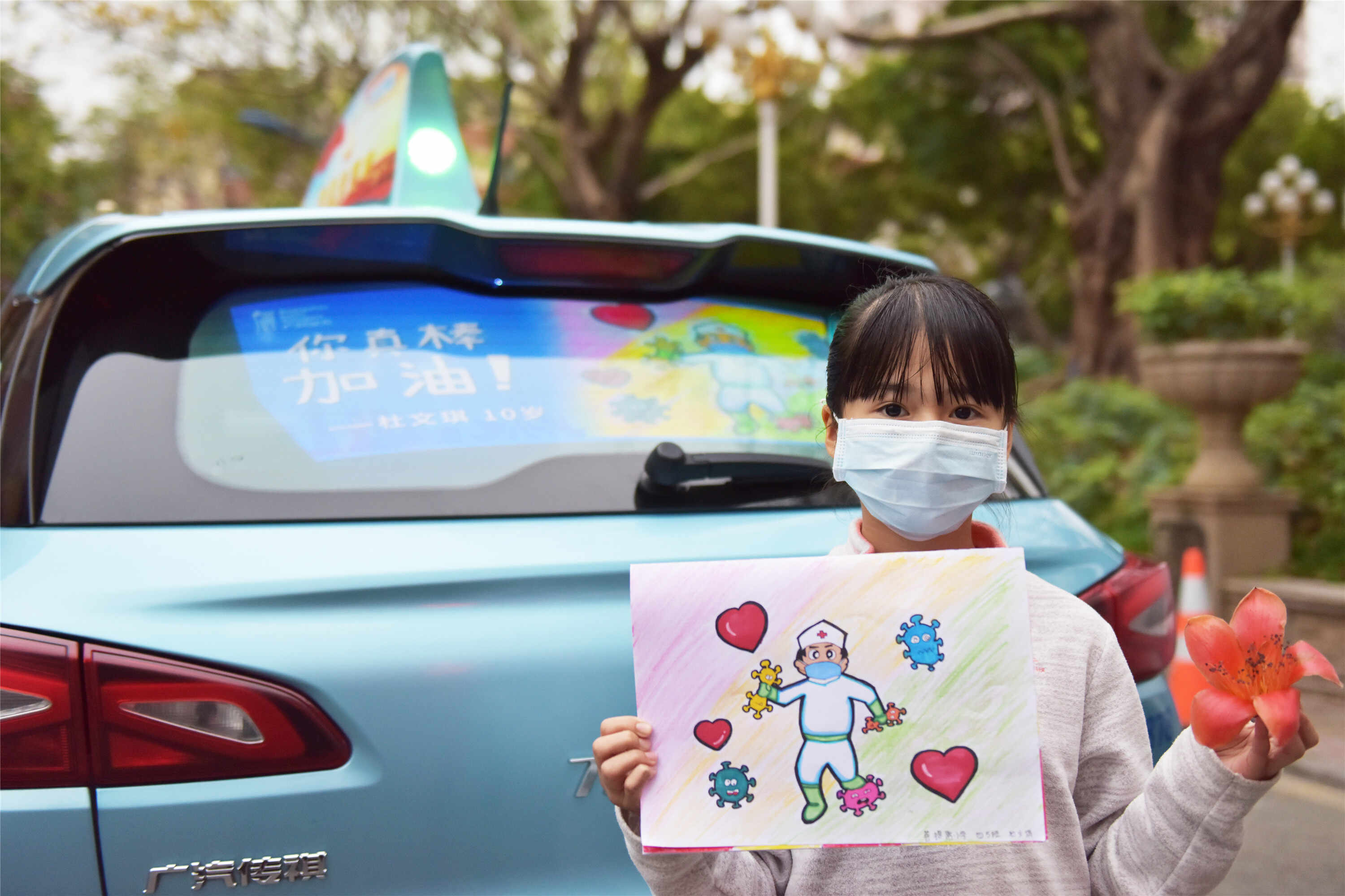 这是广州公交集团白云(广交)公司和上海碧虎科技公司联合共同开展的“童心暖羊城”公益宣传活动。通过亲子绘画征集活动,将孩子们的童画和手写文字制作成宣传画轮番展示,每批展示4-6幅,每周更换一批,直至疫情结束。