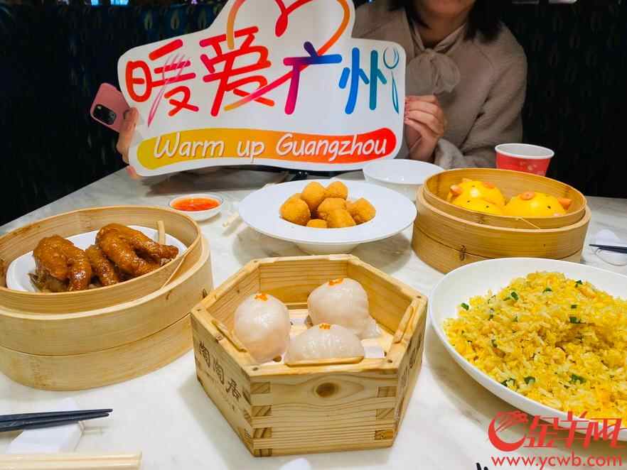 中午十二点半,记者来到了陶陶居国金店,刚出电梯,就看到一系列陶陶居的特色菜式牌,光泽诱人的食物旁是“暖爱广州”醒目的Logo。原来,看菜之余,食客也能参与到暖爱广州的活动中,与商家一起助力餐饮企业的恢复。
