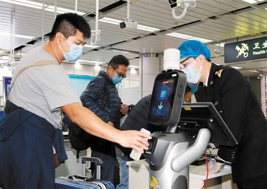 人工智能正走进人们的生活,图为“指尖健康申报”机器人在口岸上线运行