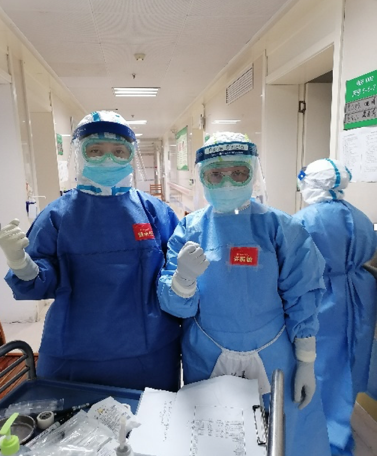 广东医疗队的五位护士长再次细化工作,陈丽芳护士长及周瑛护士长负责ICU的护理查房,张银英护士长负责ECMO病人的管理,我和王玲护士长则负责重症一区及二区护理质量检查。穿好防护服后经过院感监控员的检查过关,顺利进入到了隔离病房。