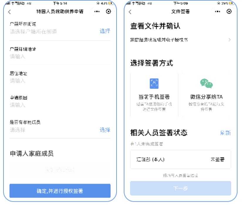 4.手机签署《家庭经济状况核对电子授权书》(户主及家庭成员须人脸验证,若不在一起居住可发送微信链接)。