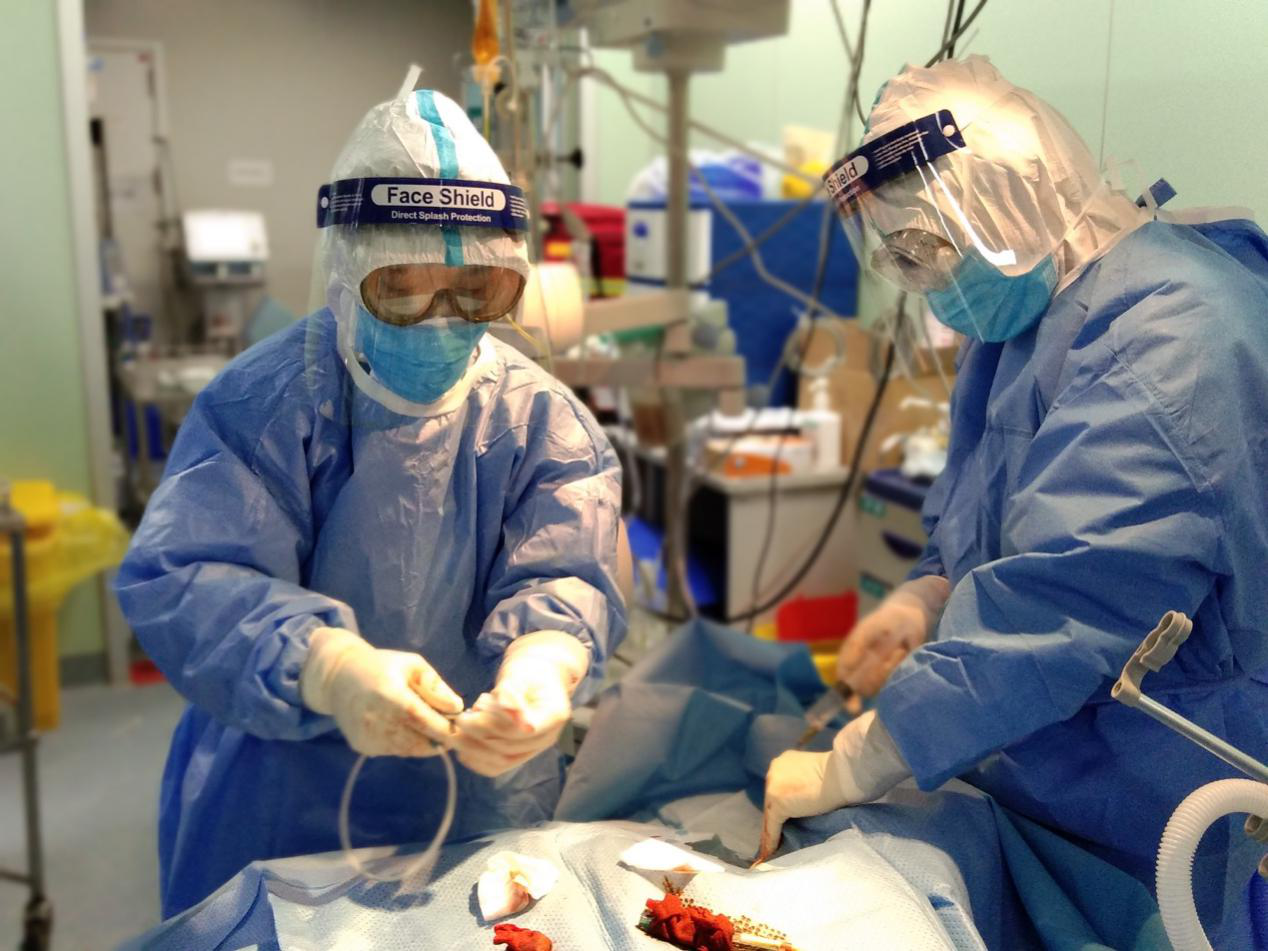 因为戴上正压头套、穿上防护服,所有日常熟稔的操作动作都变得特别笨拙,例如纤支镜操控每一个方向也变得很不容易,三层手套下触摸动脉很多时候就没那么明显,只能靠B超定位。我们像个初学者一样谦卑地摸索,小心翼翼地迎难而上。